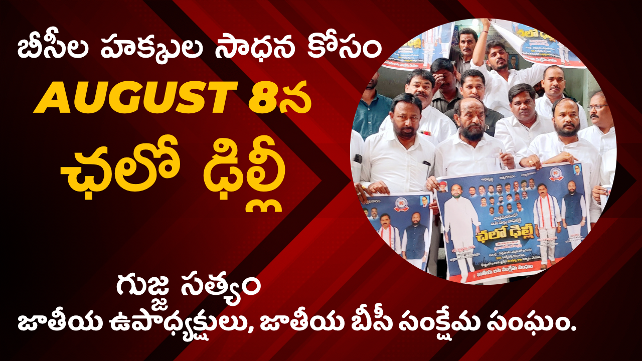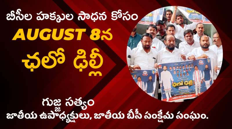బి.సి లకు అసెంబ్లీ, పార్లమెంట్ ఎన్నికలలో 50 శాతం రిజర్వేషన్లు కల్పించాలని ఆగష్టు 8న ఛలో ఢిల్లీ