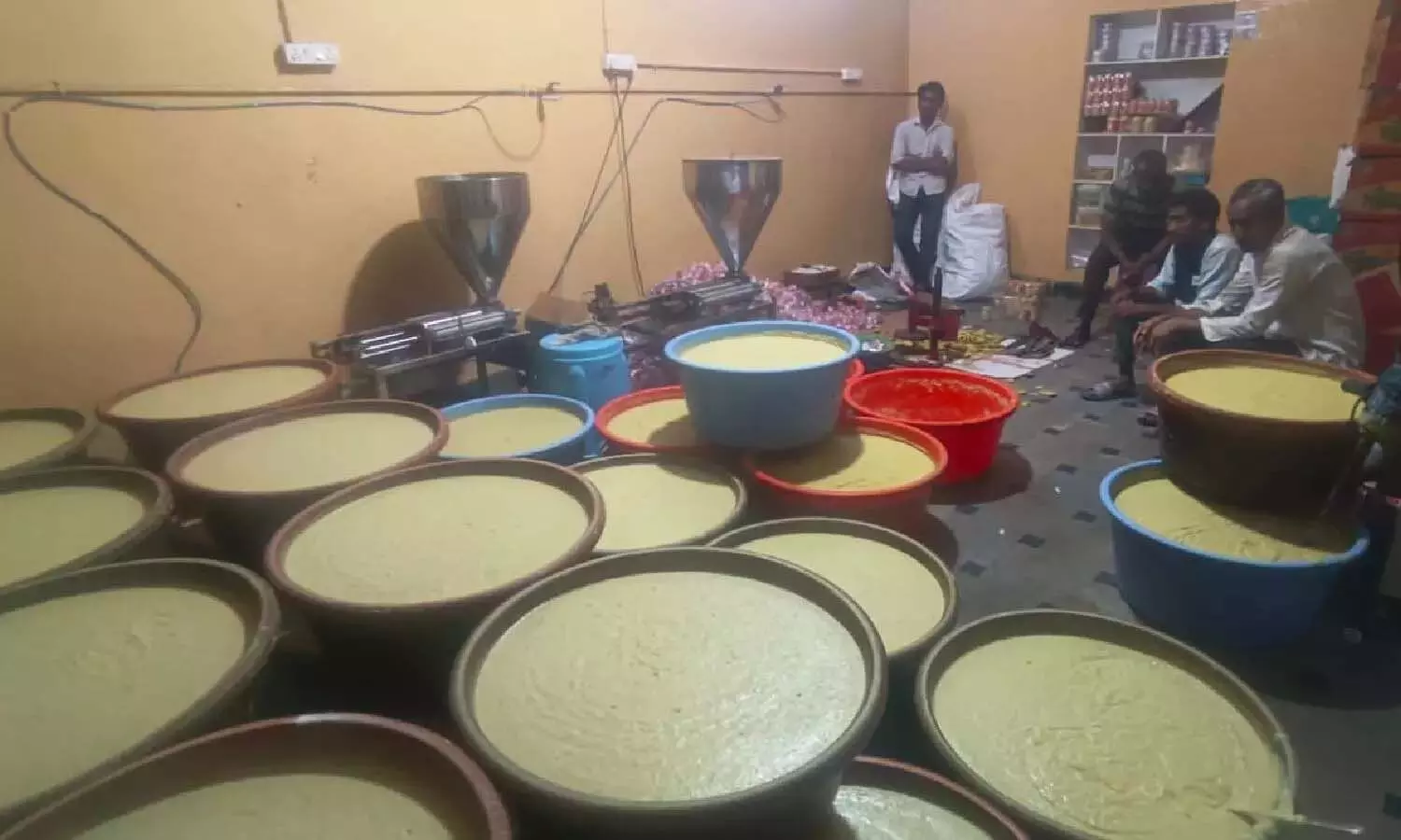During the raid, authorities discovered a food adulteration racket where workers were reportedly preparing adulterated ginger garlic paste in unhygienic conditions. The products were being packed and supplied to local grocery stores, raising serious concerns about food safety and public health.
